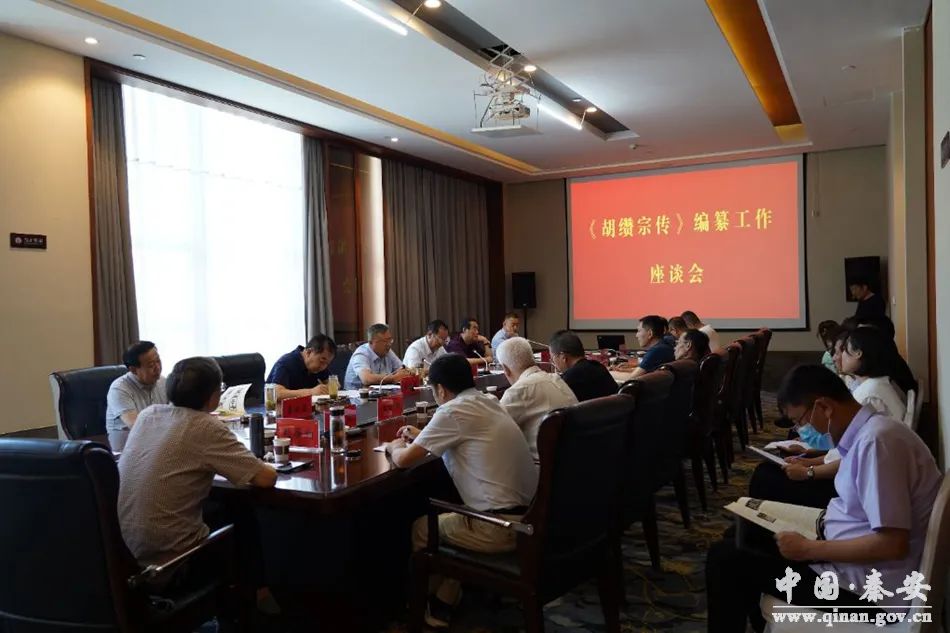 6月30日,秦安县召开《胡缵宗传》编纂工作座谈会。县委书记周济,县人大常委会主任李宽余,县政协主席杨喜春,县人大常委会副主任李永忠,县政协原主席张德友 ,西北师范大学历史文化学院副教授张连银,天水师范学院历史文化学院副院长、教授余粮才,天水师范学院历史文化学院教授刘雁翔,天水市伏羲文化研究中心研究部主任张建林,以及《胡缵宗传》部分编纂人员和相关镇、单位负责人参加会议。据悉《胡缵宗传》的筹备工作于去年6月开始,研究讨论了体例风格和写作大纲,确定专人负责收集资料、联络专家学者等工作。目前已收集各类资料近200万字,打印胡缵宗著作4种。《胡缵宗传》一书,分身世篇、生平篇、文学篇、诗词篇、法篇、志书篇、刊刻篇、后世篇共8篇12章。召开《胡缵宗传》编纂座谈会,启动这样一项文化工程,既是一件整理历史文献、梳理文化名人事迹的大事,也是一件弘扬中华优秀传统文化的好事。对于胡缵宗这样一位500年来秦安县涌现出的最著名的历史文化名人,我们要从秦安深厚的历史文化中,全方位深度解读胡缵宗的生平经历。